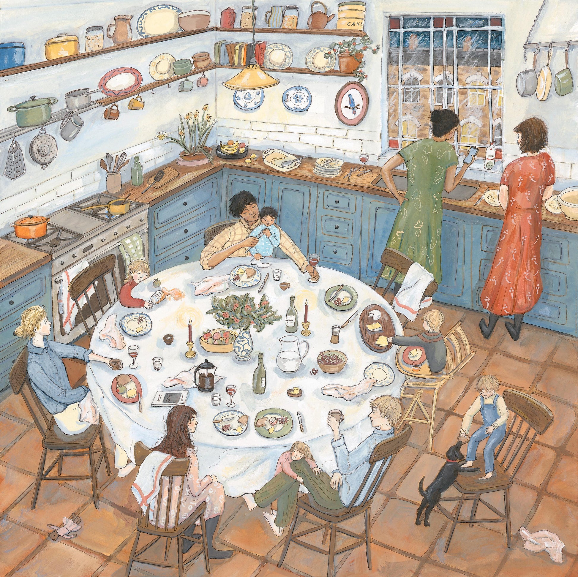 This giclée print is a reproduction of my gouache painting 'In the Midst of Life’. Sociability becomes so much less civilised with children, but despite the spills and crumbs and tantrums, how little sleep I’ve had the night before, the impossibility of uninterrupted conversation, sitting around a table to eat with friends still seems to me one of the most magical things.