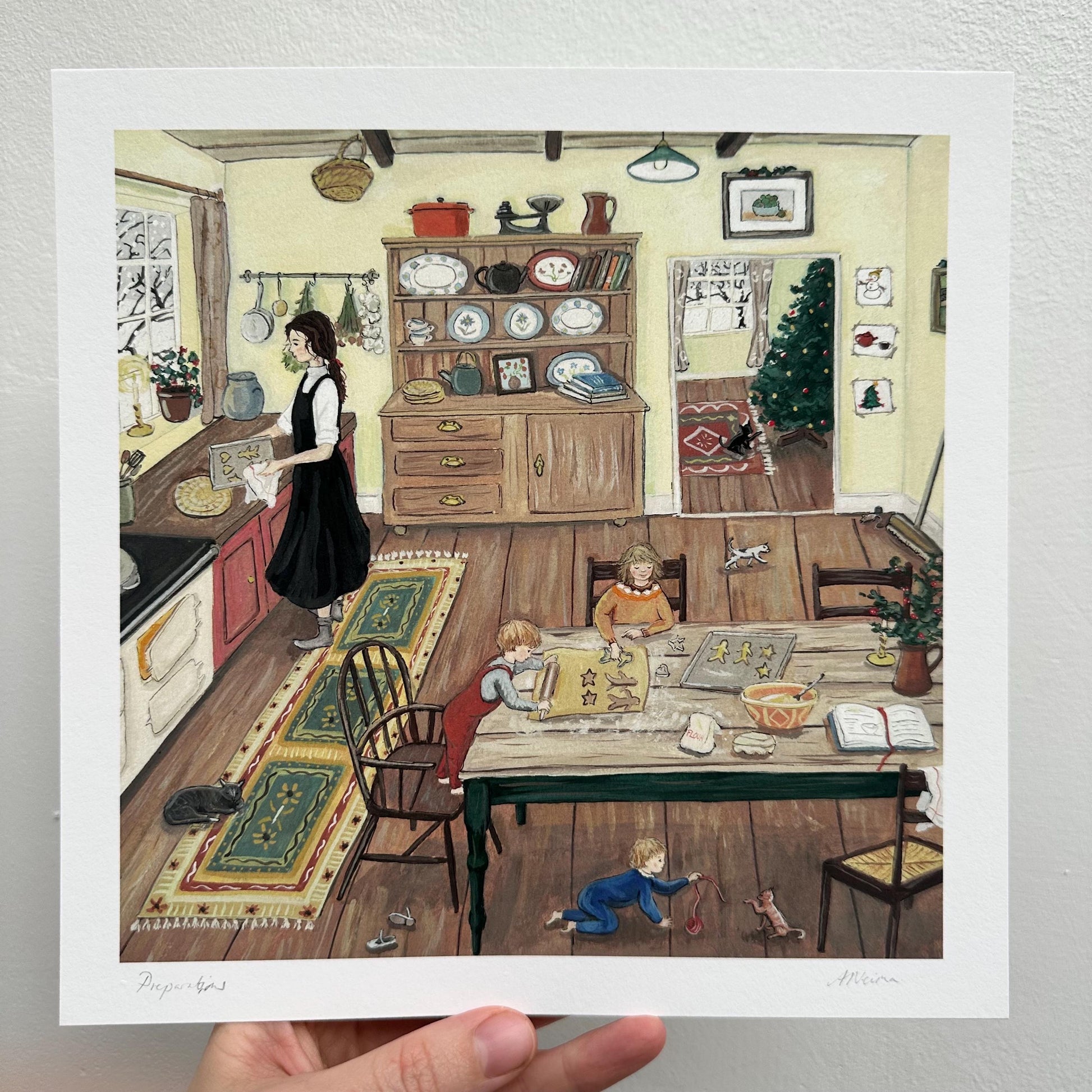 This giclée print is a reproduction of my gouache painting 'Preparations’. For celebrating Christmas, parents, cooks or anyone who loves that cosy, snowbound feel of winter.